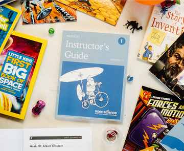 Noeo Physics 1 guides your kid through an exciting first exploration of the world of physics. We’ve packed your Noeo box with books, lesson plans, and experiments, all ready to go from day 1.